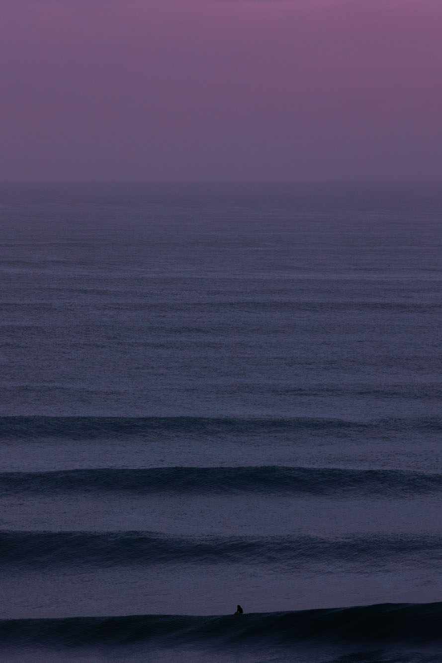 L’image d’un surfeur patientant entre deux séries de vagues, au coucher du soleil, capture une scène empreinte de calme, de mouvement et de réflexion. Le surfeur, seul sur l’eau, se tient dans une position tranquille, observant l’horizon tout en attendant la prochaine vague. L’air est frais, la mer encore agitée par les vagues passées, mais une silence palpable s’installe. C’est un moment suspendu, entre deux instants d’action, où la tension est douce, où le surfeur se prépare intérieurement à la vague suivante.